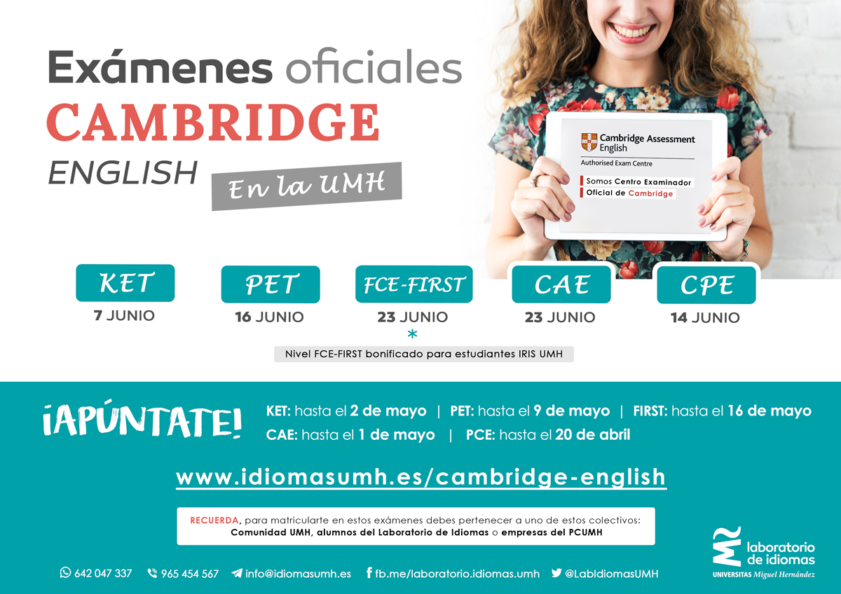 Abiertas las inscripciones para la convocatoria de junio de los exámenes Cambridge English en la UMH