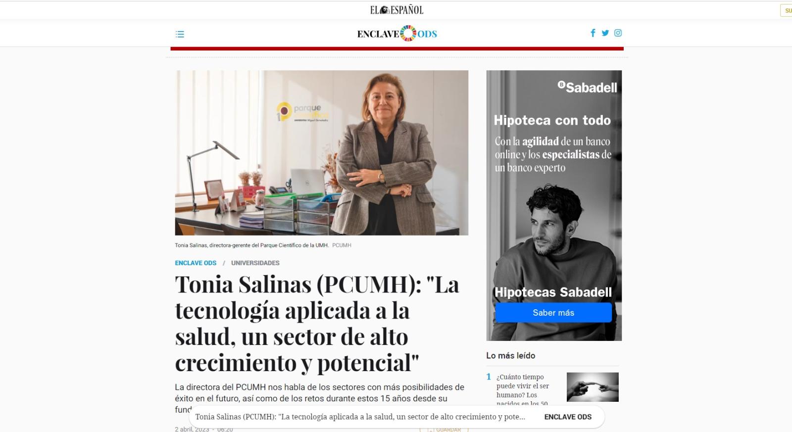 En El Español | "La tecnología aplicada a la salud, un sector de alto crecimiento y potencial"